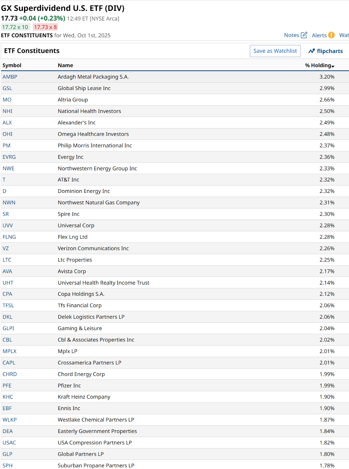 And Evergy (EVRG) is a Midwest U.S. electric utility whose history dates back to when it was known as Westar, and prior to that Kansas City Power and Light. It is no surprise to find utility stocks in an ETF like DIV.