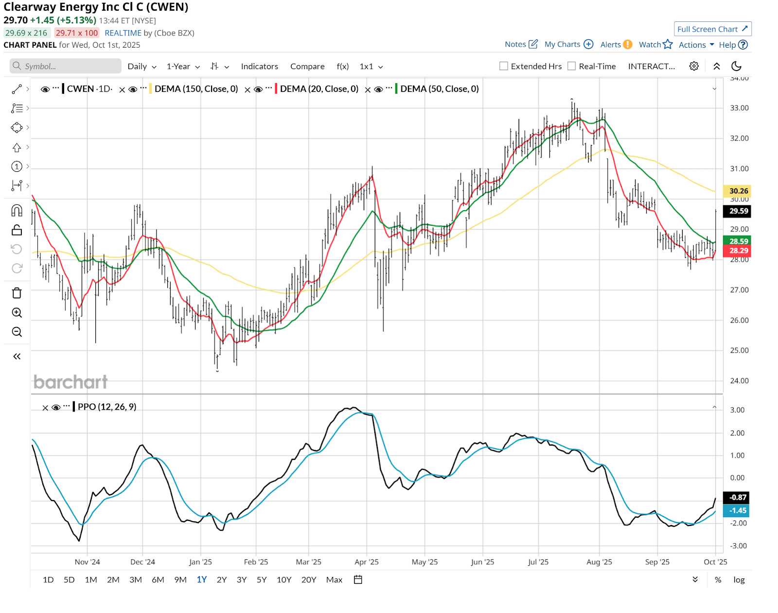 CWEN is showing signs of taking a run at its recent high around $33 a share, 10% up from where it traded on Tuesday afternoon. That would make for a nice total return on top of an annual yield north of 6%.