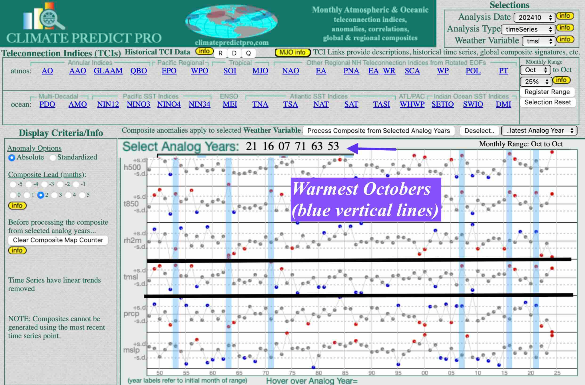 - The first one has to do with just looking at temperature trends and cycles when October is warmer than normal.