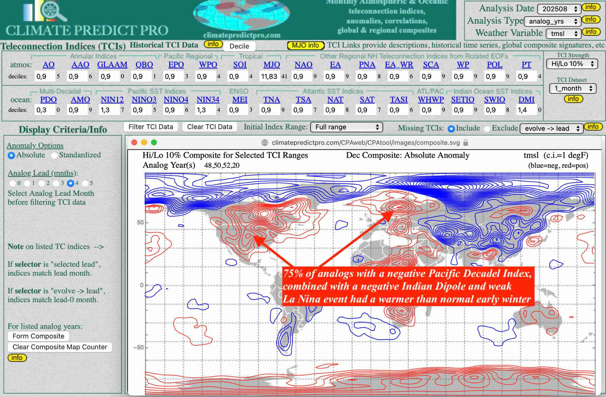 However, the weaker La Niña events, (when coupled with a negative IOD and negative PDO) often bring warmer than normal early winters across the majority of the U.S. energy demand areas.