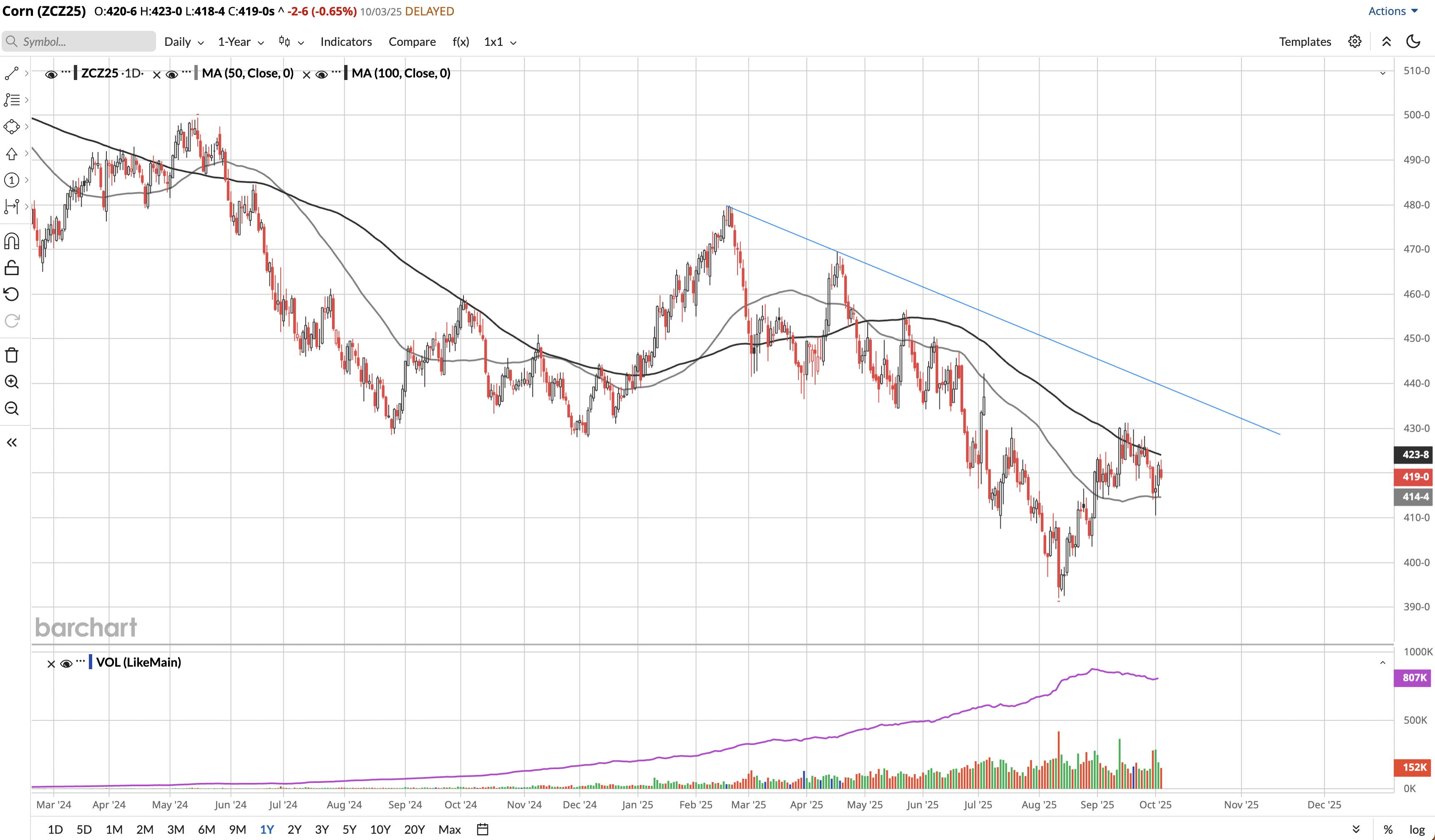December’25 Corn Options Expire 11/21/25 (49 Days)